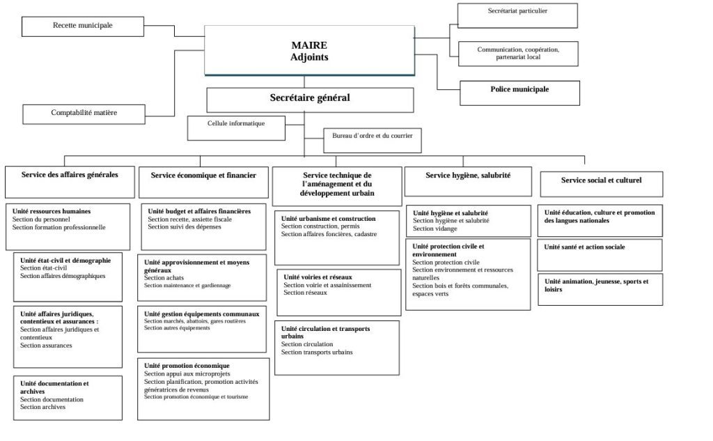 L’organigramme fonctionnel de la commune montre certaines limites comparées à l’organigramme type des communes.